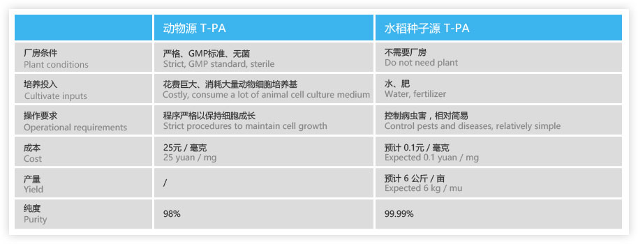 以阿替普酶(t-PA)为例,转基因水稻种子易于保存和运输,储运要求大大降低。